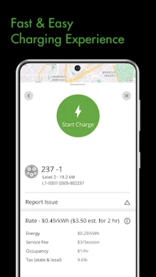 Monitor real-time information during a charging session and view details about the charging session including occupancy time, estimated charge session cost, charging stations information, energy delivered, and current vehicle charging speed.