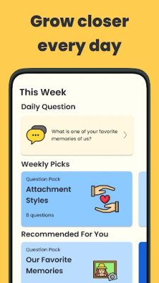 Deeper Talks: Relationships is a couples app with meaningful question packs, daily questions, and quizzes as conversation starters for couples. Our relationship app will help guide you and your partner through engaging and deep conversations. Free weekly conversations and daily questions are paired with optional reminders to nudge you towards your relationship goals. Grow your communication skills and build a lasting relationship.