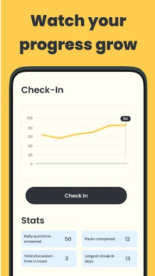 Use Deeper Talks every week to track the growth of your relationship. From achieving one goal to the next, you'll navigate the ups and downs of life together, growing closer each day.
